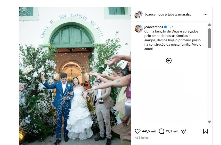 A cerimônia de casamento entre João Campos e Tabata Amaral atraiu a atenção de diversas personalidades da política brasileira. Entre os convidados estavam o ex-governador Geraldo Alckmin e o ministro Alexandre de Moraes.