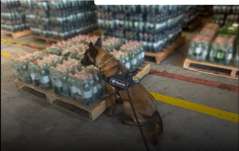 As garrafas somavam um total de 300 unidades. O produto foi encontrado através do monitoramento por escâneres e do auxílio dos agentes caninos Daphne e Enzo.