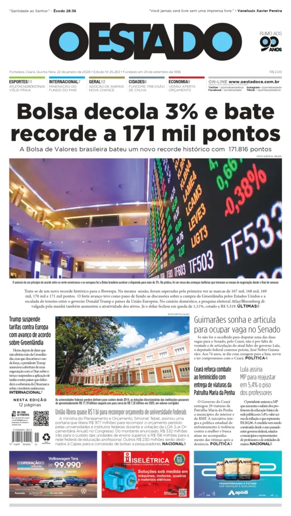 A edição número 25.263 do jornal está disponível a partir de 22 de janeiro de 2026, trazendo uma variedade de notícias e informações relevantes.