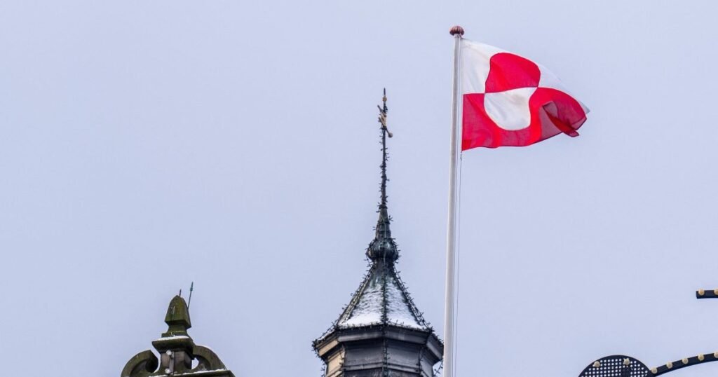 Bandeira da Groenlândia em Copenhagen, na Dinamarca  • 08/01/2026 Ritzau Scanpix/Ida Marie Od...
