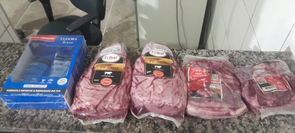 Durante a abordagem, Anderson foi flagrado com diversos produtos escondidos dentro da mochila. Entre os itens recuperados estavam um kit de tratamento capilar, duas peças de picanha e duas peças de contrafilé. O funcionário responsável pela prevenção de perdas do supermercado se apresentou como representante da empresa e manifestou interesse em formalizar a denúncia.