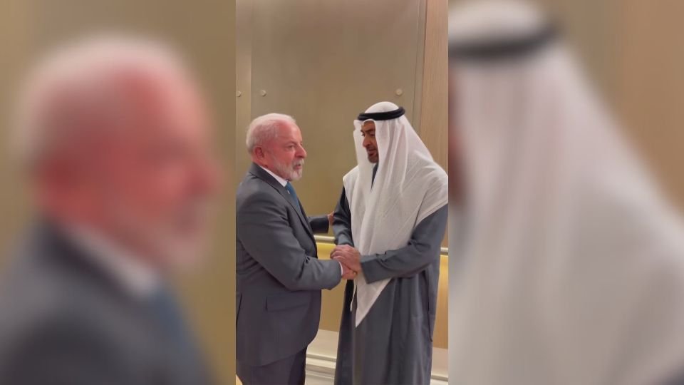 O presidente Luiz Inácio Lula da Silva teve um encontro com o xeique Mohammed bin Zayed Al Nahyan, presidente dos Emirados Árabes Unidos, nesta terça-feira, no Aeroporto Internacional de Abu Dhabi. Durante a reunião, os líderes discutiram o fortalecimento da colaboração estratégica entre suas nações, com foco especial nas áreas de comércio e investimentos.