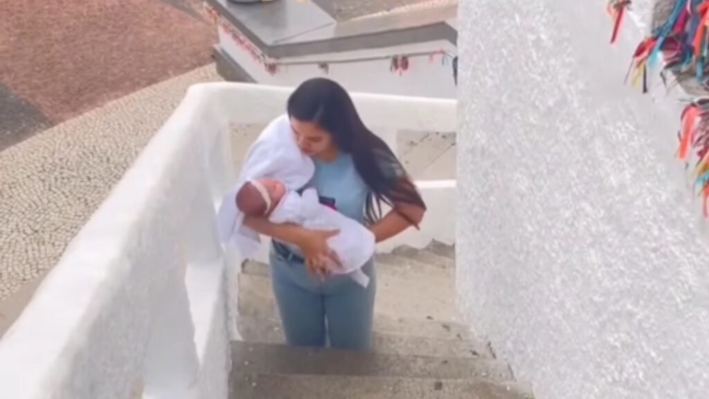 Um vídeo de uma mãe cumprindo uma promessa em Juazeiro do Norte, Ceará, tem ganhado destaque nas redes sociais. A gravação retrata Francinete Barros de Souza Freire, de 24 anos, subindo de joelhos as escadas do Horto do Padre Cícero, enquanto carrega sua filha, Maria Mellina, em seus braços.