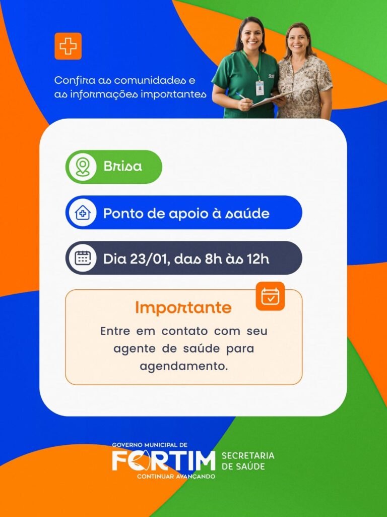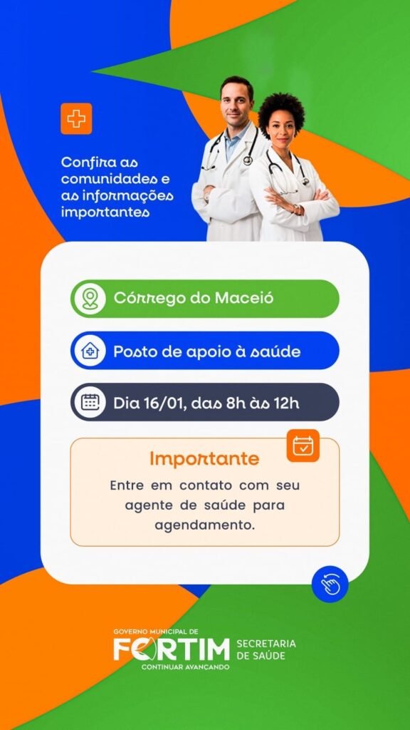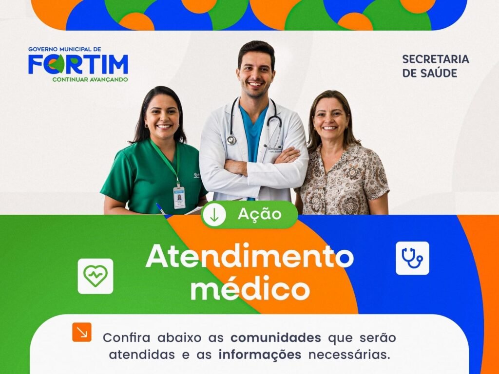 A Prefeitura de Fortim, por meio da Secretaria Municipal de Saúde, realizará uma ação de atendimento médico voltada às comunidades do município, com o objetivo de ampliar o acesso da população aos serviços de saúde e reforçar a atenção básica.