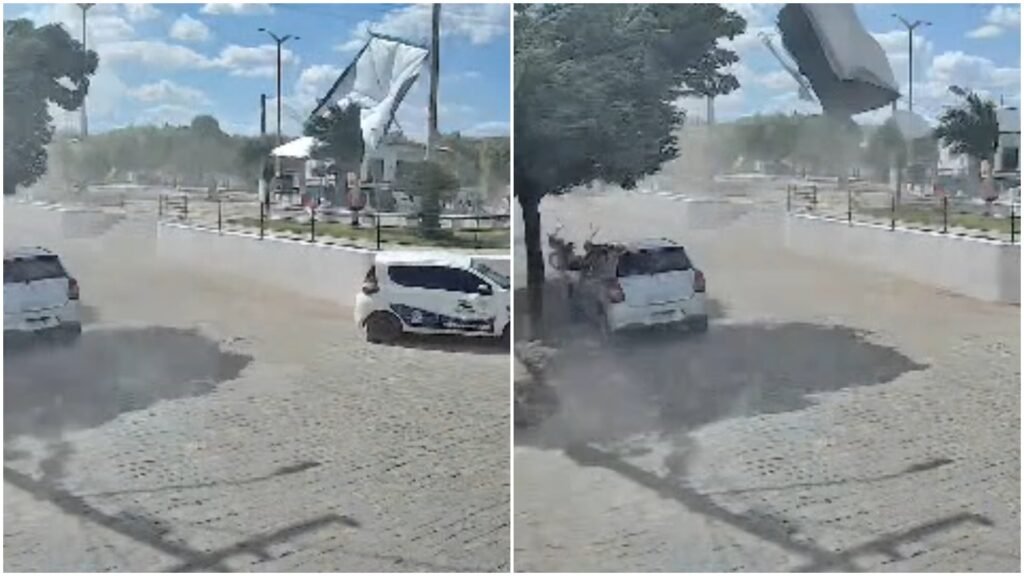 Por volta das 14 horas, a força do vento durou apenas alguns segundos, mas foi o suficiente para causar pânico. Câmeras de segurança capturaram o momento em que um pequeno redemoinho se formou na rua Israel Henrique, levantando poeira e assustando tanto os moradores quanto os animais da região.